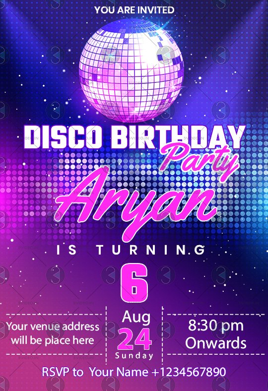Disco birthday invitations card
